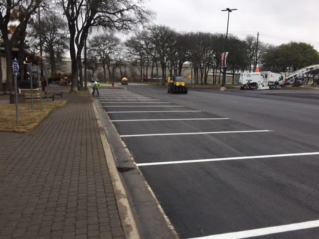 Alpha Paving is an award-winning asphalt paving company offering a full range of pavement-related services to customers throughout Austin and Central Texas. Our services include asphalt paving, road construction, street maintenance, asphalt overlays, parking lot striping and pavement marking, asphalt milling, speed bump installation, asphalt repairs, sealcoating, parking lot car stops, concrete installation, parking lot signs and concrete repair. We routinely provide services to customers in a wide range of industries, including shopping centers and malls, educational institutions, manufacturing facilities, distribution centers and warehouses, airports, hotels, apartment complexes, hospitals, office parks, subdivisions, restaurants, banks, HOAs, religious institutions, municipalities and counties, condominium complexes, retailers and property management firms. Our employees are highly trained, share our commitment to exceptional customer service and deliver work that is of the highest quality. If you would like to receive a free, no-obligation estimate, fill out the online request form or call our office at 512-677-9001.