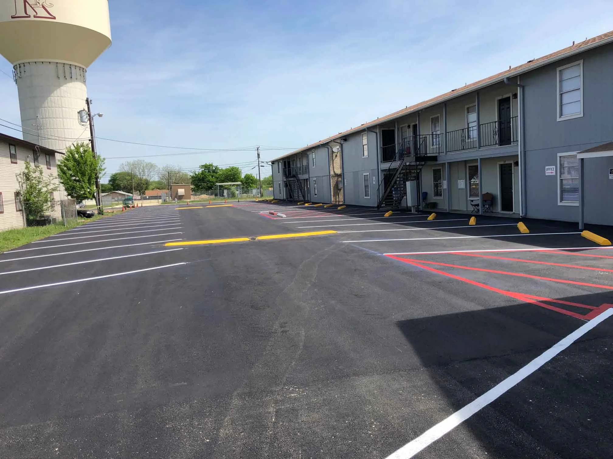 Residents of Lakeview Apartments enjoy a community that is conveniently located in the northeastern part of Killeen, TX. The community lies within walking distance of city parks, public transportation stops, and an acclaimed high school. Fort Hood, the Killeen Mall, two movie theaters, and numerous restaurants are within five miles of the community. Lakeview’s residents value the quality of life they enjoy at the complex, so when management noticed that the parking lot and landscaping needed attention, the company contacted Black Diamond Grounds. In turn, Steve Mitton, the general manager of Black Diamond Grounds, asked Alpha Paving to handle some of the asphalt paving tasks involved.