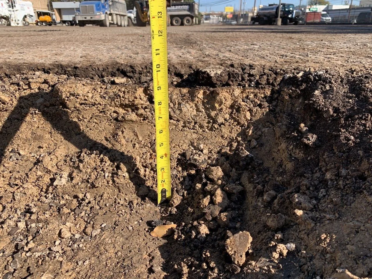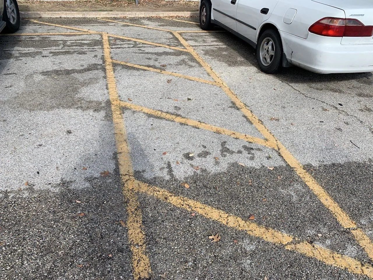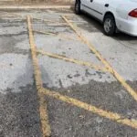 The existing pavement showed its age, and it was nearing the end of its useful life. There were numerous potholes and extensive cracks, the pavement markings were barely visible, and many of the wheel stops were damaged, displaced, or crumbling. There were also some pavement depressions in which water was collected after rain fell.