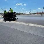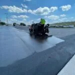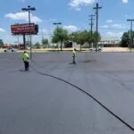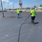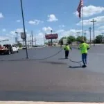 We were the prime contractor for this project, and it was the first time that we had served this customer. The dealership wanted to ensure that the pavement in the parking lot was attractive, safe, and protected. We started with the repairs. Repairs ranged between two and four inches for a total of more than 500 square feet. We used TXDOT 340-Type D asphalt for the repairs. Next, we applied two coats of Jennite AE sealcoating. The first coat was squeegee-applied, and the second coat was applied with a sprayer. The dealership approved this method because it would offer better coverage of surface flaws, provide more material, and deliver a longer life for the sealcoating. This required about 5,900 gallons of sealcoating to cover 148,825 square feet of pavement. The last part of the project was to stripe and mark the parking lot.