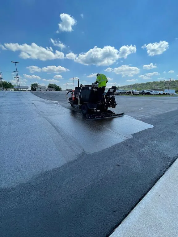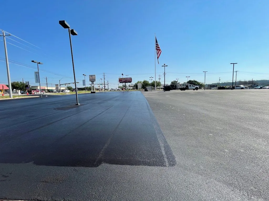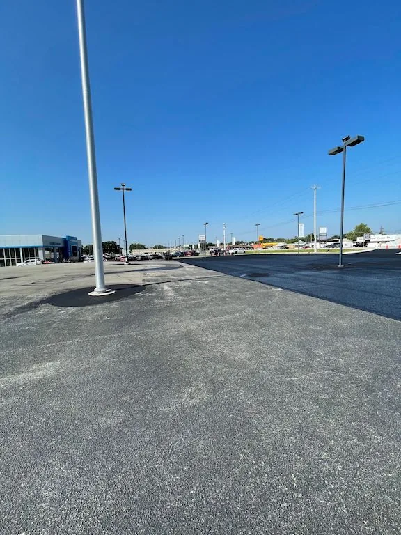 From start to finish, the job took approximately two weeks. At the time, the dealership was light on inventory, so this allowed us to complete the job in less time than would have been needed if there had been a lot more vehicles to work around. In the end, the dealership had a parking lot with a fresh look, a pavement that was adequately protected against damage, and a safer area for their customers and employees.