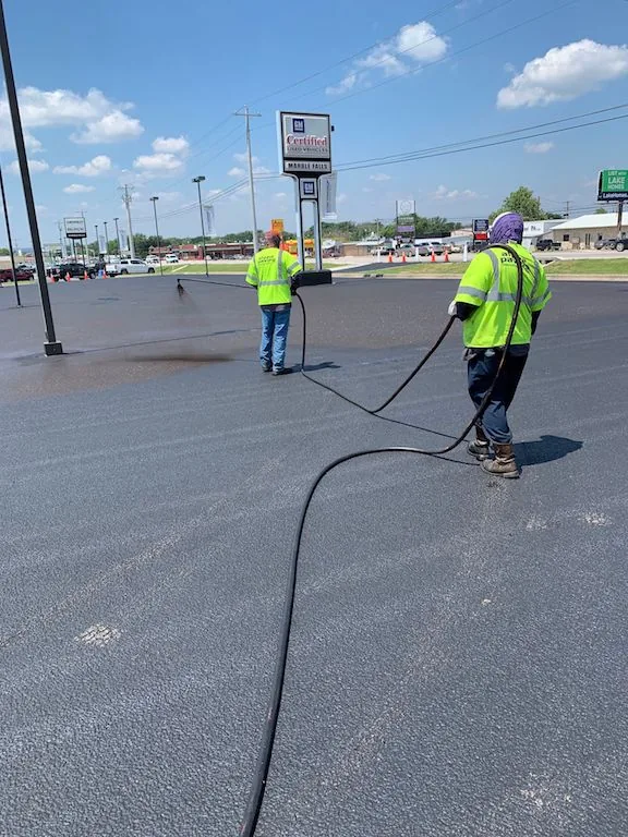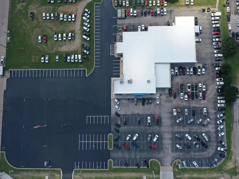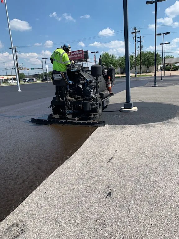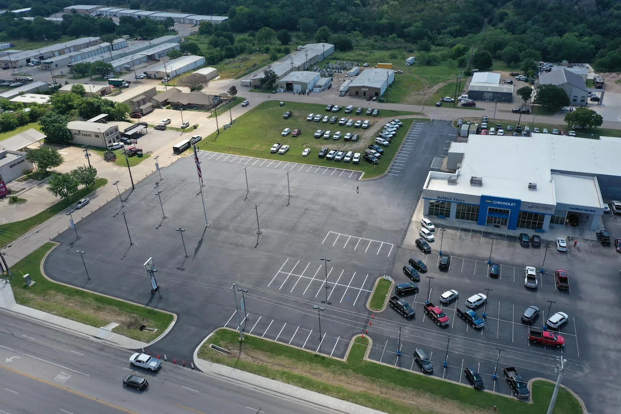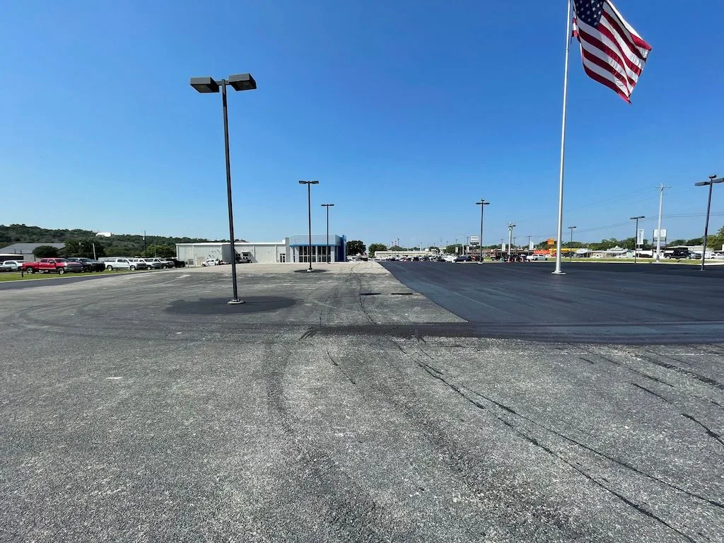 Every parking lot has the potential to present unique challenges. This was certainly the case when Chevrolet Buick Marble Falls asked us to repair, sealcoat, and stripe their parking lot. With most parking lots, we can simply close off certain areas to prevent access, complete the work in each area, and then move on to the next section. In the case of the Marble Falls Chevrolet dealership, the parking lot contained their inventory. We would like to express our appreciation to Rand Bettencourt, the parts manager at the dealership, for his assistance in the phasing and moving of the vehicles throughout the project.