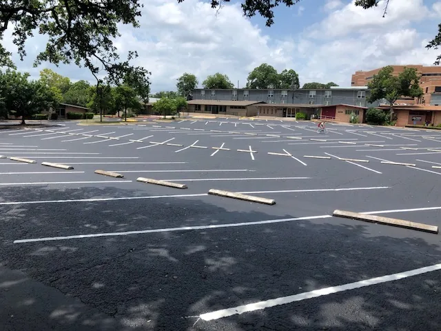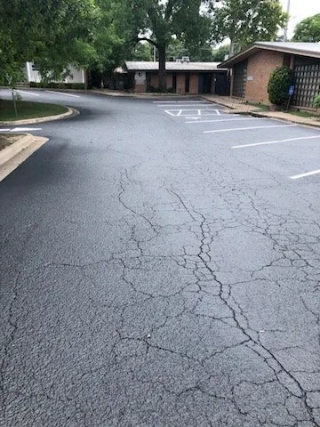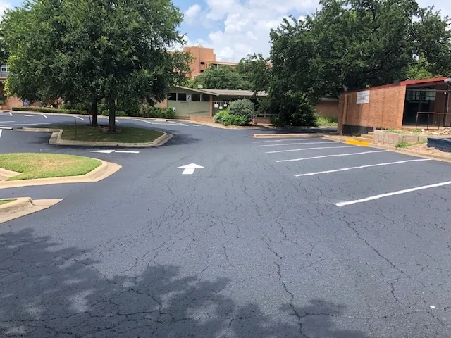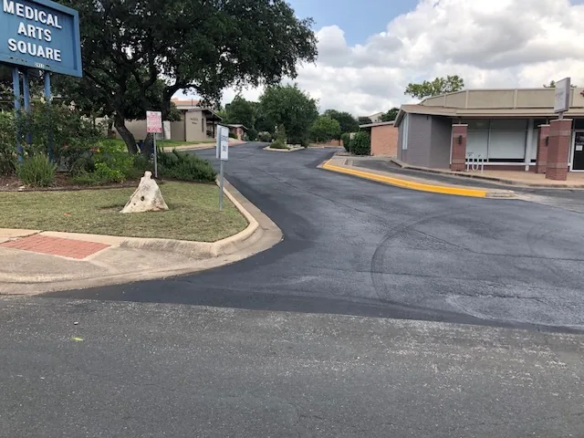 Medical Arts Square is home to about 20 small offices for medical practitioners in Austin, TX. The buildings form a square with a shared parking lot in the middle. It is an older site, and the asphalt parking lot was part of the original construction. In 2016, a doctor with offices at Medical Arts Square called to discuss some parking lot repairs. We met at the site, and I tendered a proposal for the necessary asphalt repairs, sealcoating, and fresh striping.