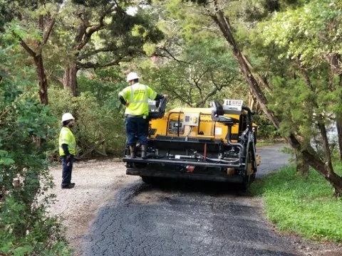 We arrived at 7:30 Monday morning with a crew of five and our equipment. Our first task was to clean the existing pavement so that the binder would ensure that the new asphalt adhered properly to the old pavement. We then proceeded to install an overlay that was 1.5 inches in depth.