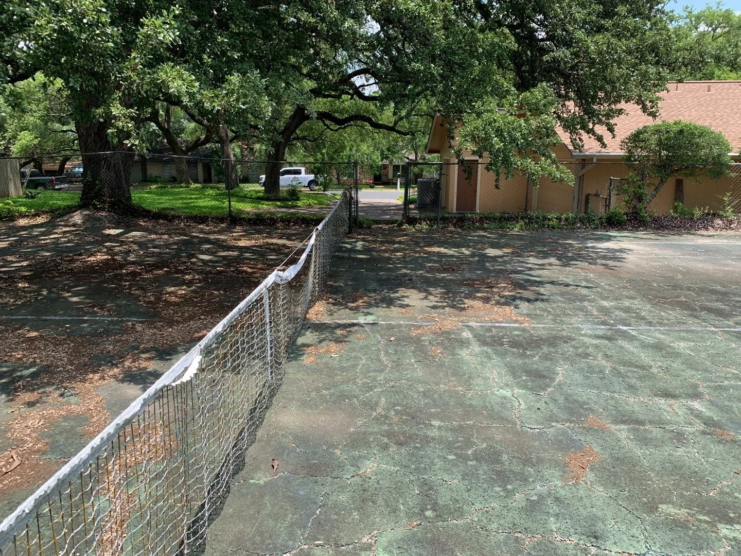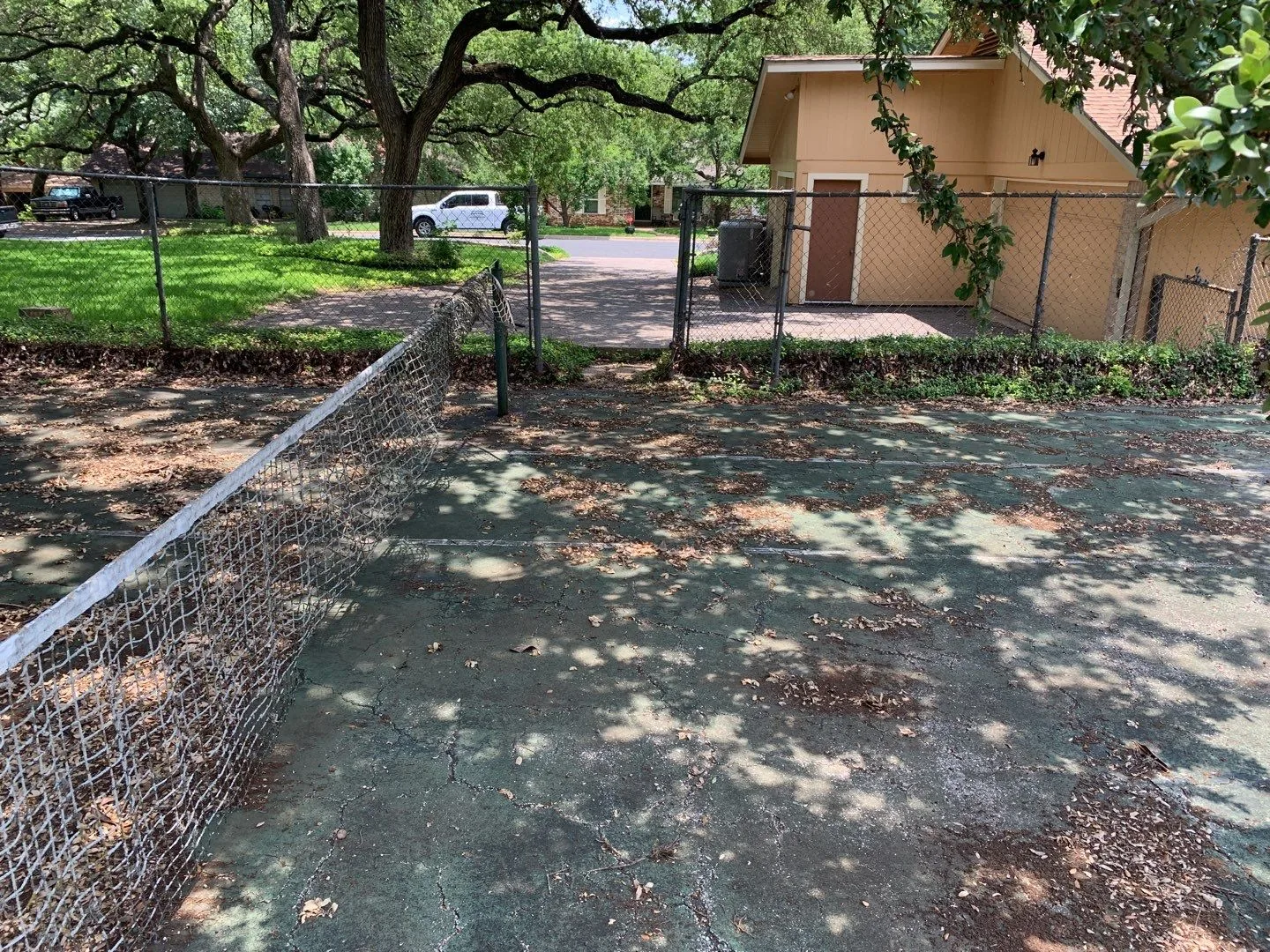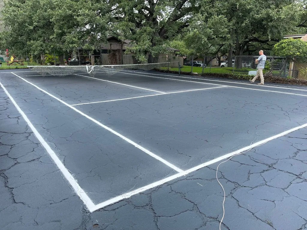 We completed the sealcoating in one day. We then returned the following day to re-stripe the tennis court.