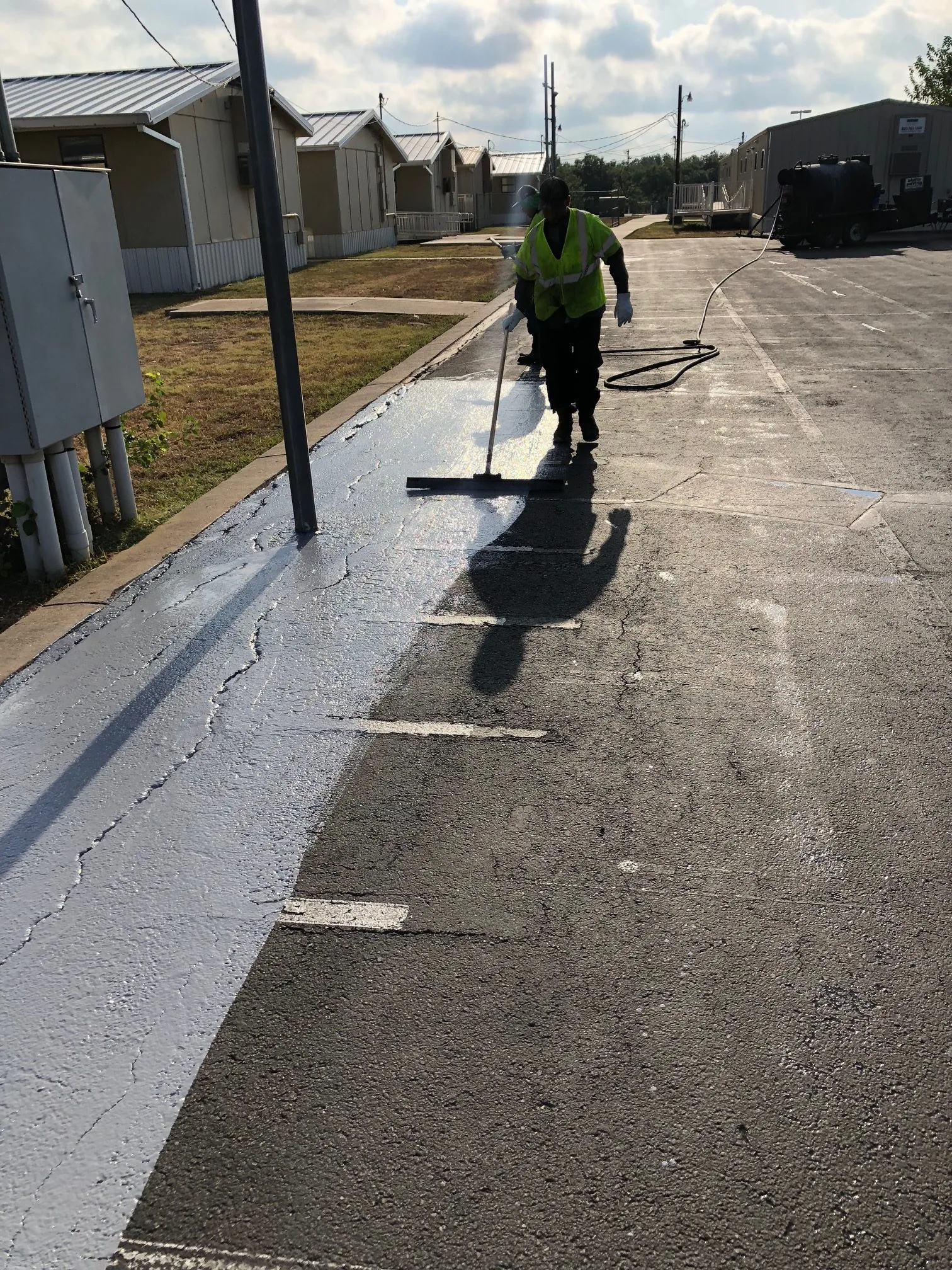 1. A good bond is critical when applying any sealant, coating, or paint. Therefore, we began by cleaning the surface thoroughly, and we applied a prime coat to assist with the formation of a strong bond between the pavement and the coating.