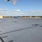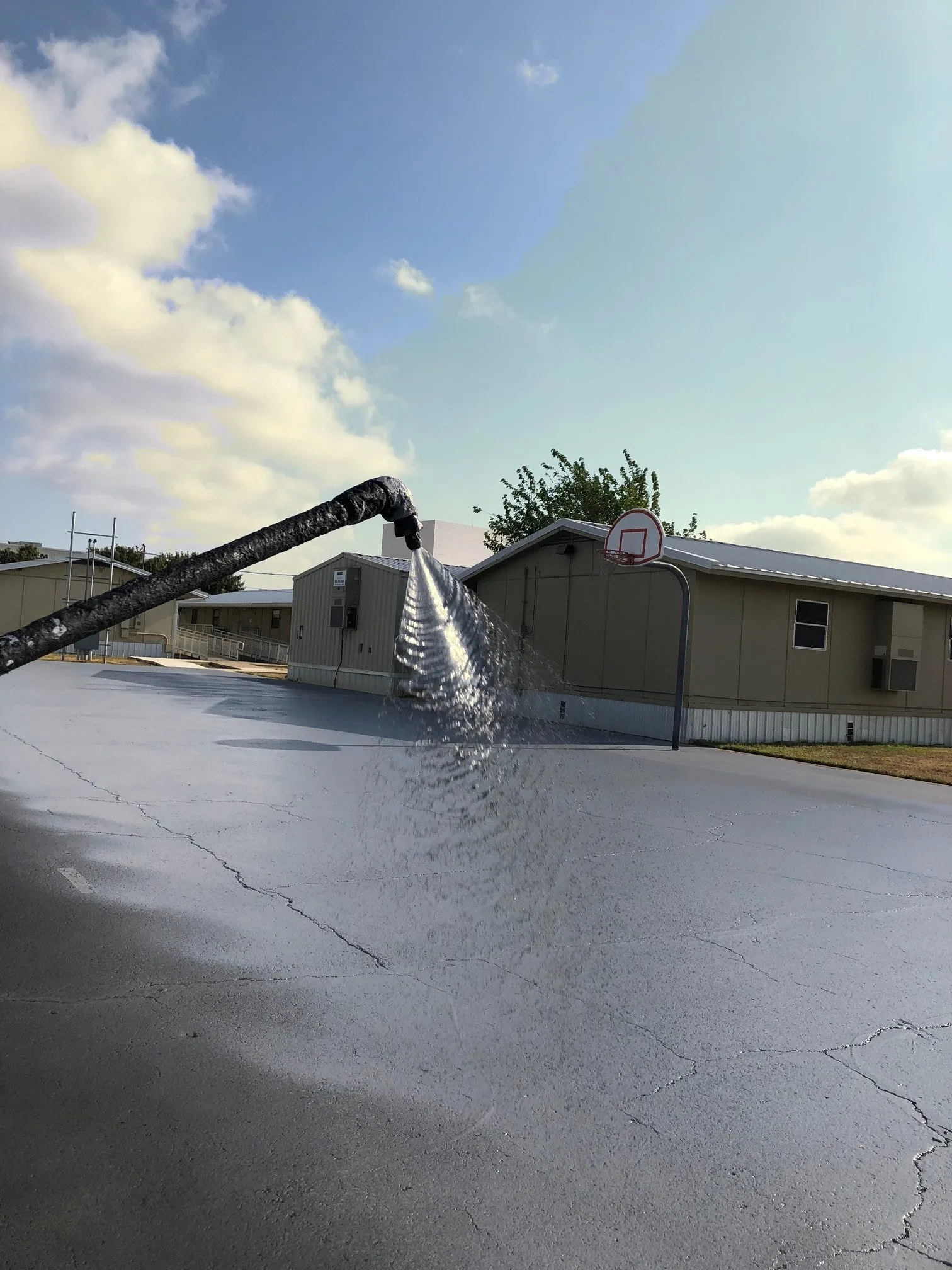4. We applied one spray coat of SunShield Clear Coat for color and stain protection. This required 750 gallons to cover 62,422 square feet.