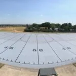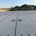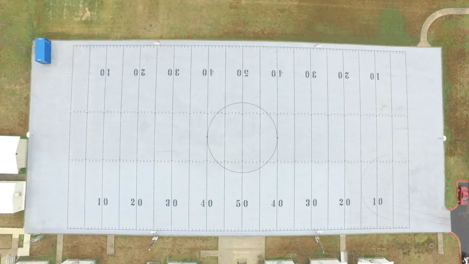 3. We applied football field striping in the exact manner that the University Interscholastic League and the National Collegiate Athletic Association specify. We used black striping to provide contrast.